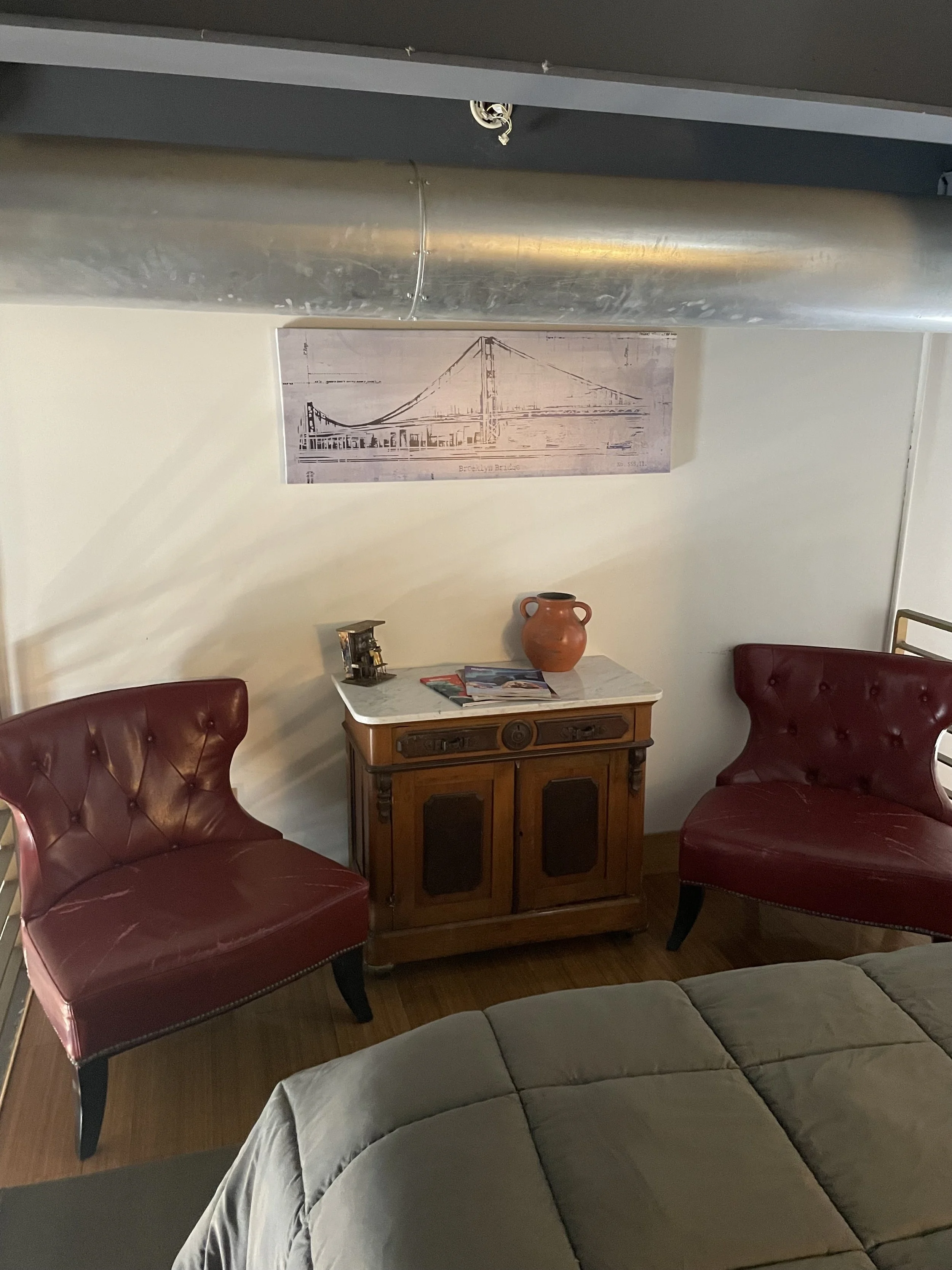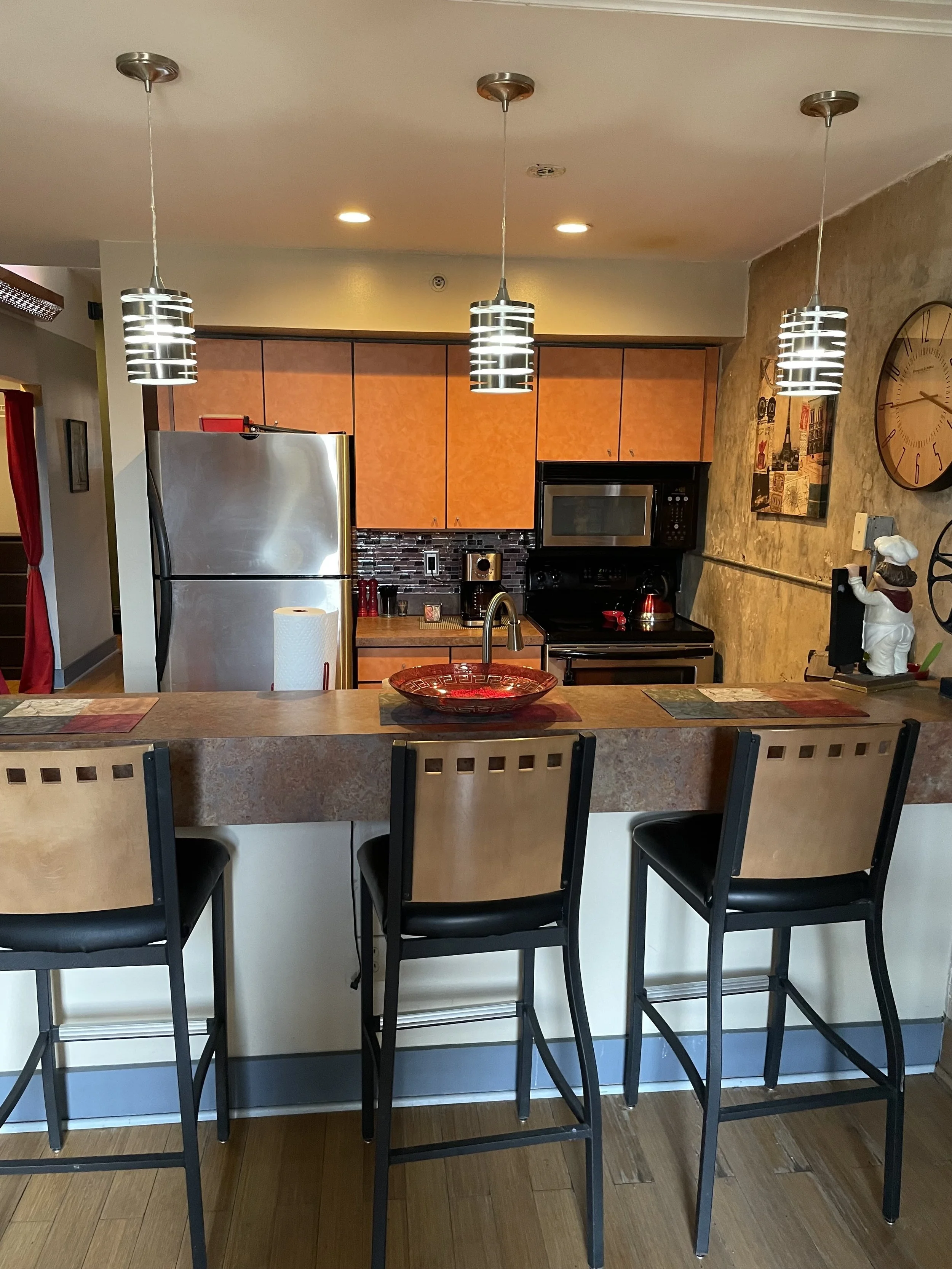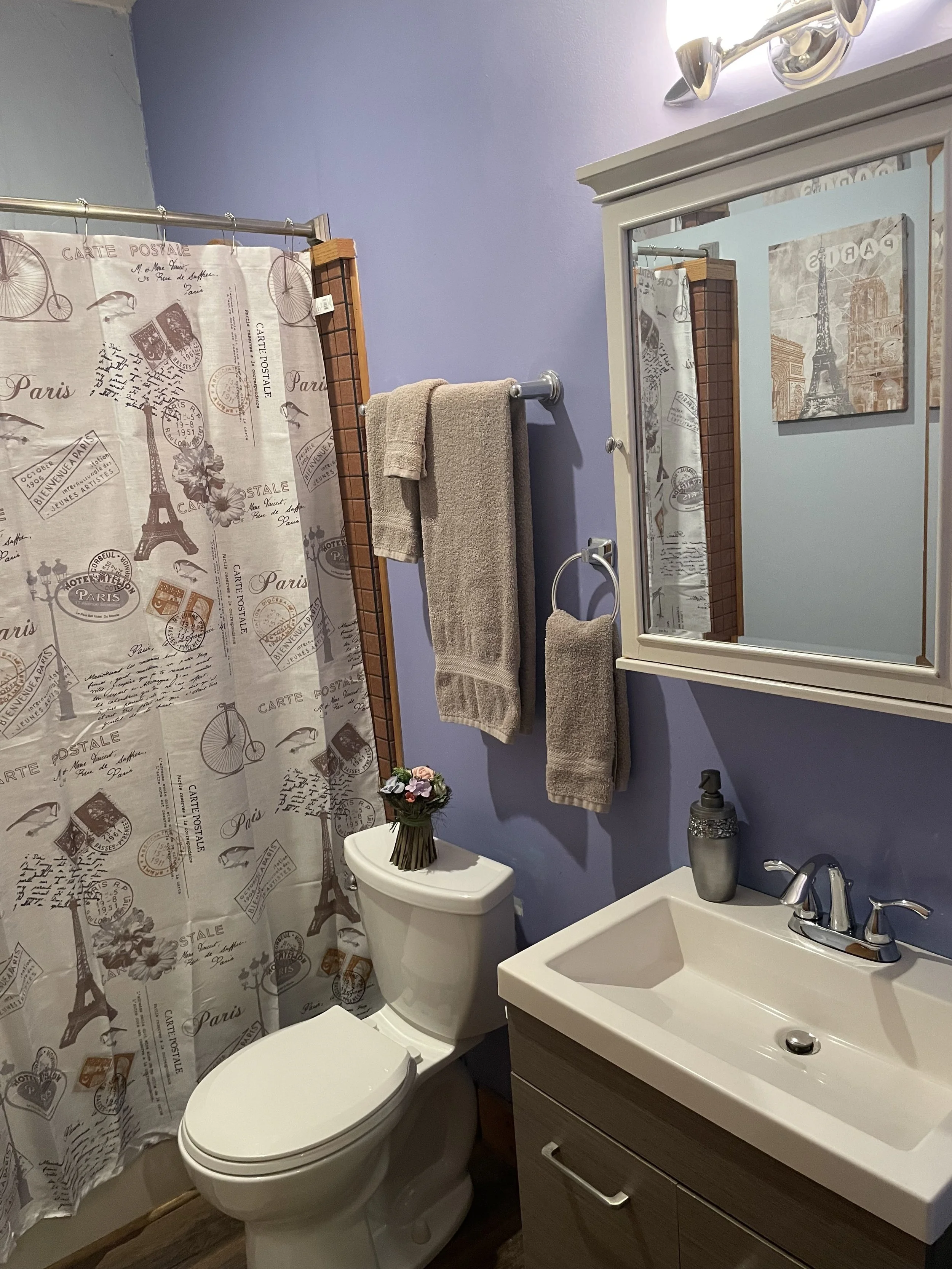 With unique Paris decor, this loft will make you feel like you are in one of France's finest homes. The spacious living room overlooks Market Square, the center of it all! Behind stylish barn doors, there is a 1st floor futon bedroom that sleeps two. In the loft, there is a queen bed and cozy sitting area. From corkscrew to Keurig, the kitchen is fully stocked, just like home. With private rooftop access, come enjoy your Downtown Knoxville experience in this fabulously French loft!